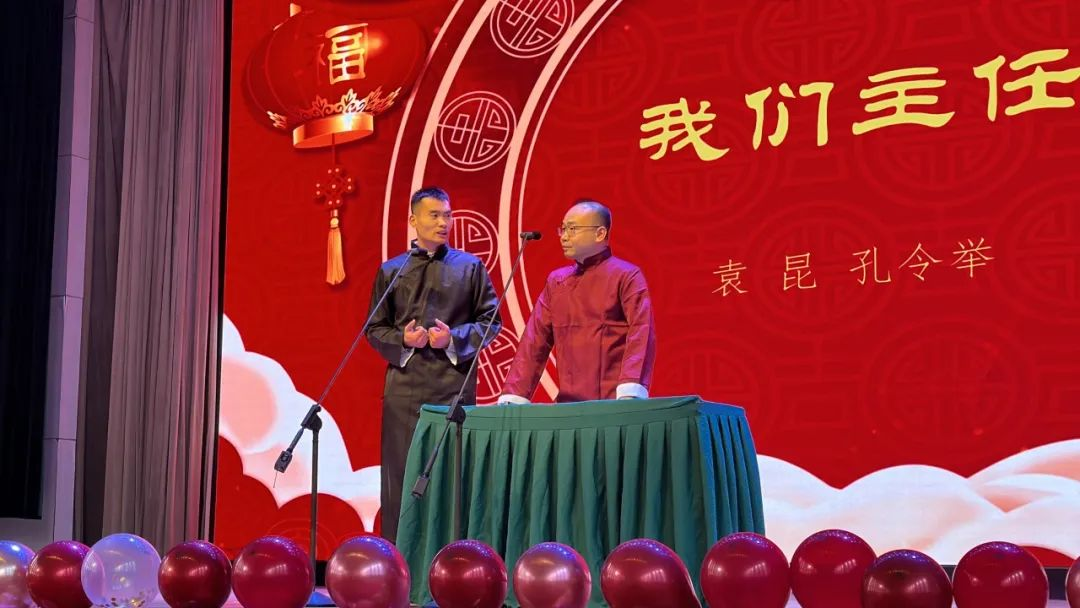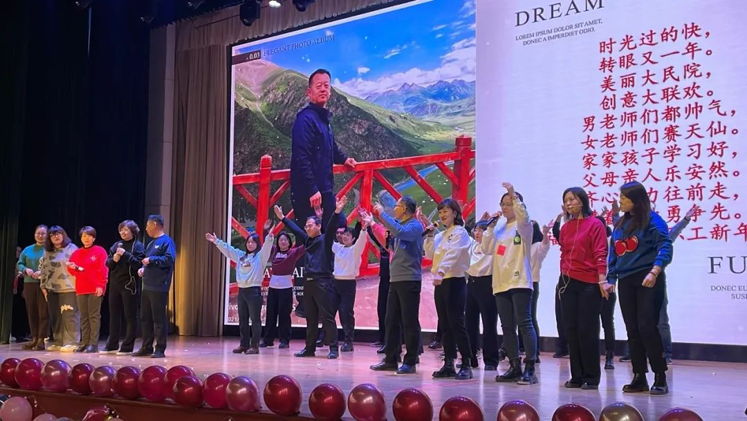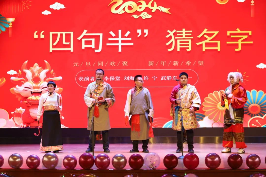 卯兔追冬去,辰龙报春来。12月28日,学院在体育馆组织主题为“铸牢民族情 共谱团结曲”的教职工迎新年联欢活动。学院领导班子成员出席,全体教职工现场观看演出。大家欢聚一堂,用歌曲、舞蹈、舞龙、四句半、相声等文艺形式作结不平凡的2023年,共同迎接充满希望的2024年的到来。联欢会由贾秦、姚鹏里、韩正堃、孟华四位老师主持。