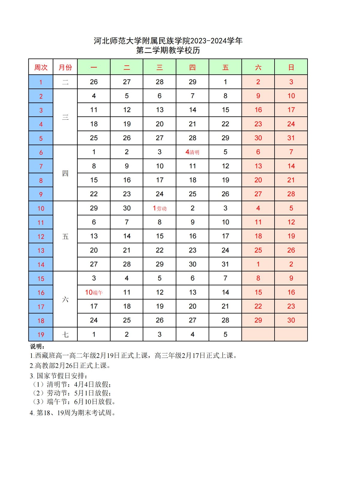 2023-2024学年第二学期校历