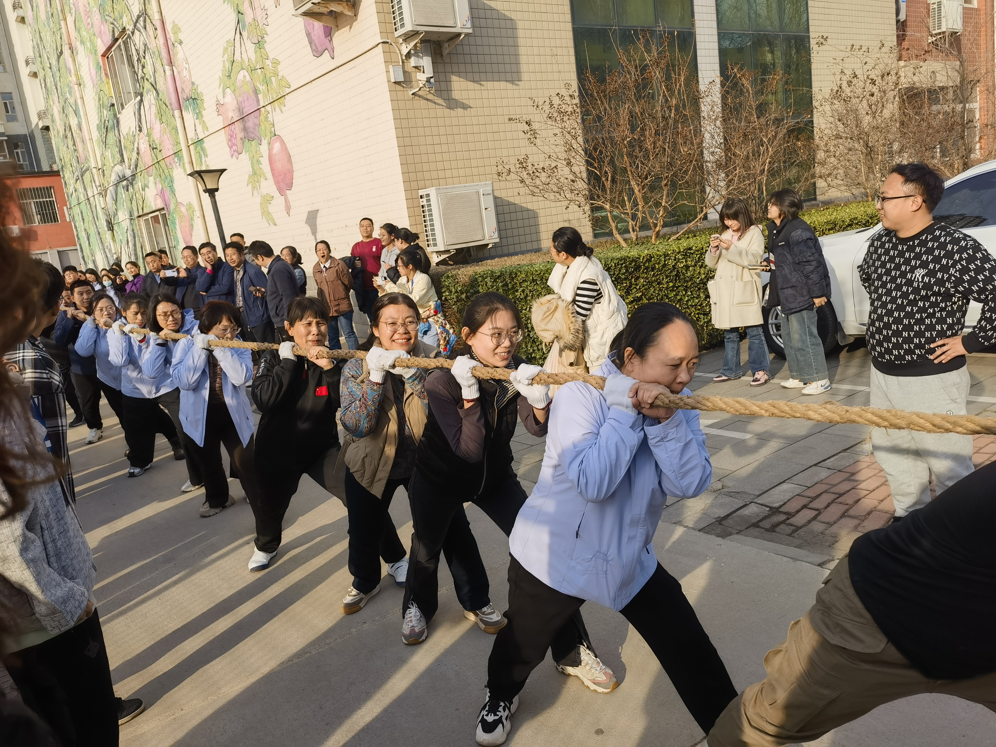在全院师生喜迎建校四十周年之际,3月6日下午,院工会开展“踔厉奋发,勇往直前”三八妇女节主题活动。来自六个工会小组140多名教职工参加了团体押加和夹球接力项目的比拼,展现了全体教工激情昂扬的精神风貌。