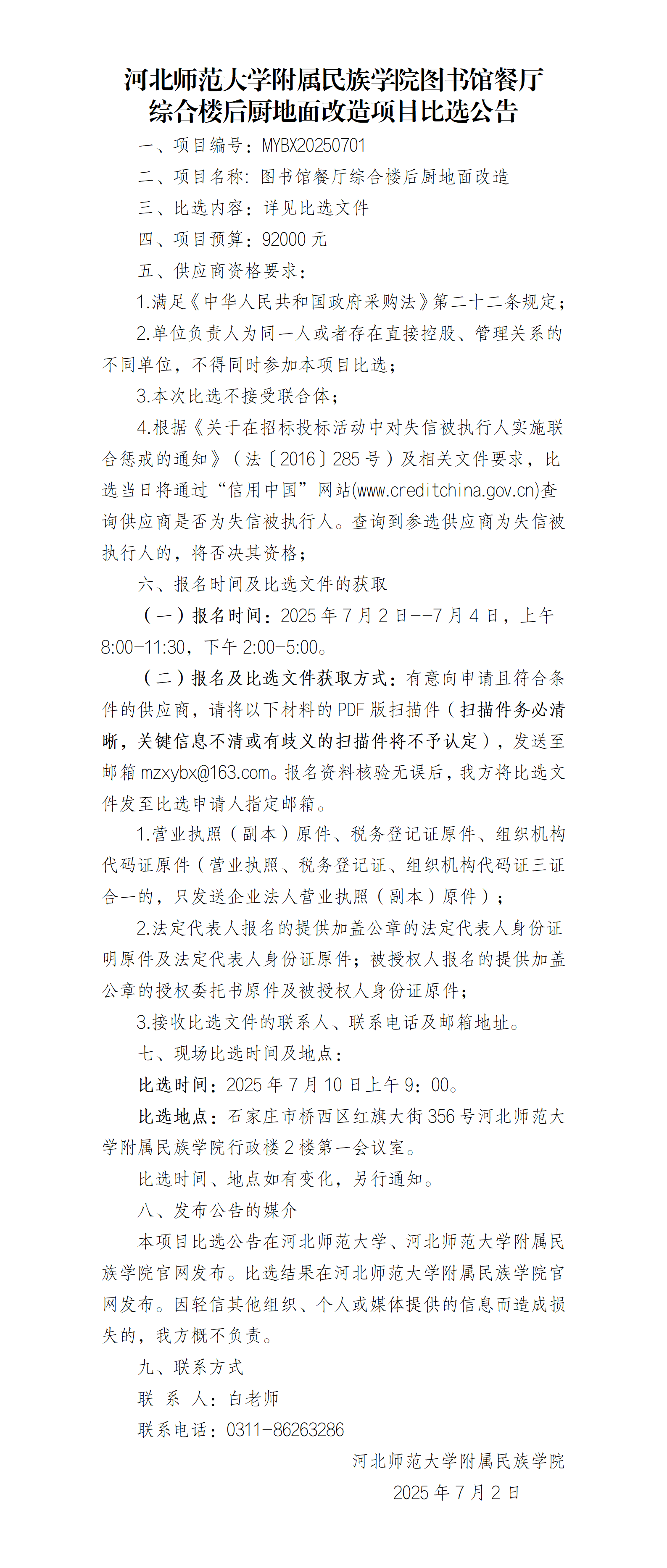 yl7703永利官网图书馆餐厅综合楼后厨地面改造项目比选公告