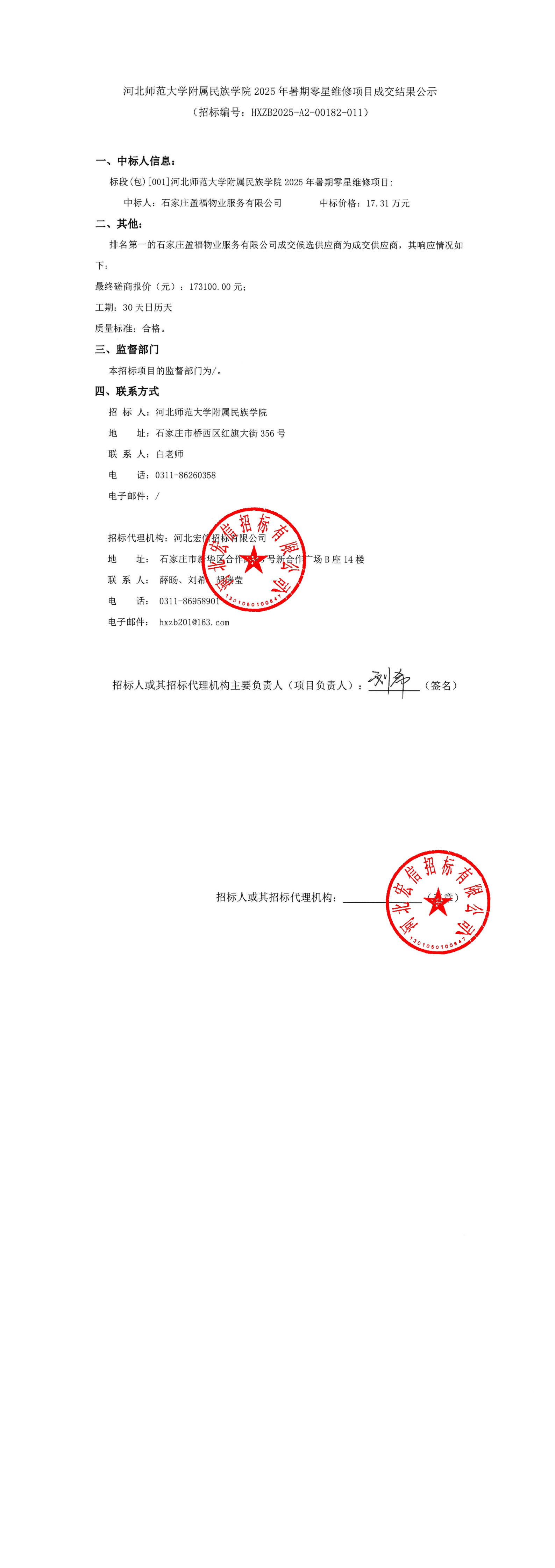 yl7703永利官网2025年暑期零星维修项目成交结果公示