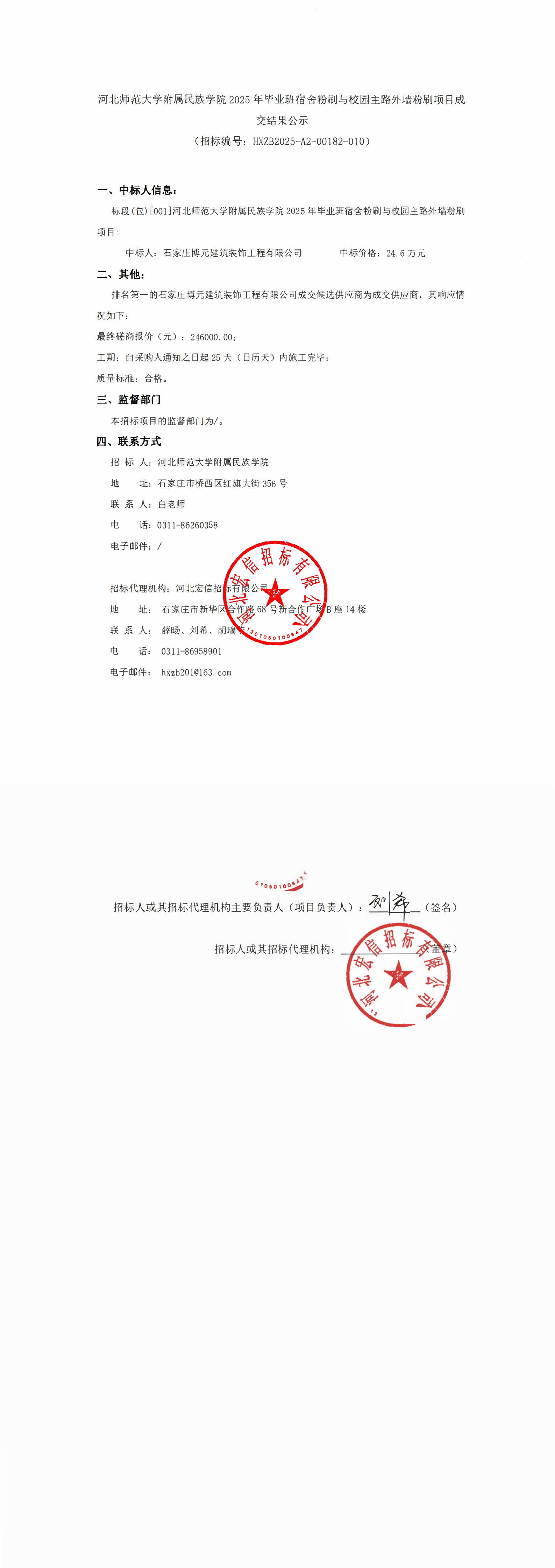 yl7703永利官网2025年毕业班宿舍粉刷与校园主路外墙粉刷项目成交结果公示