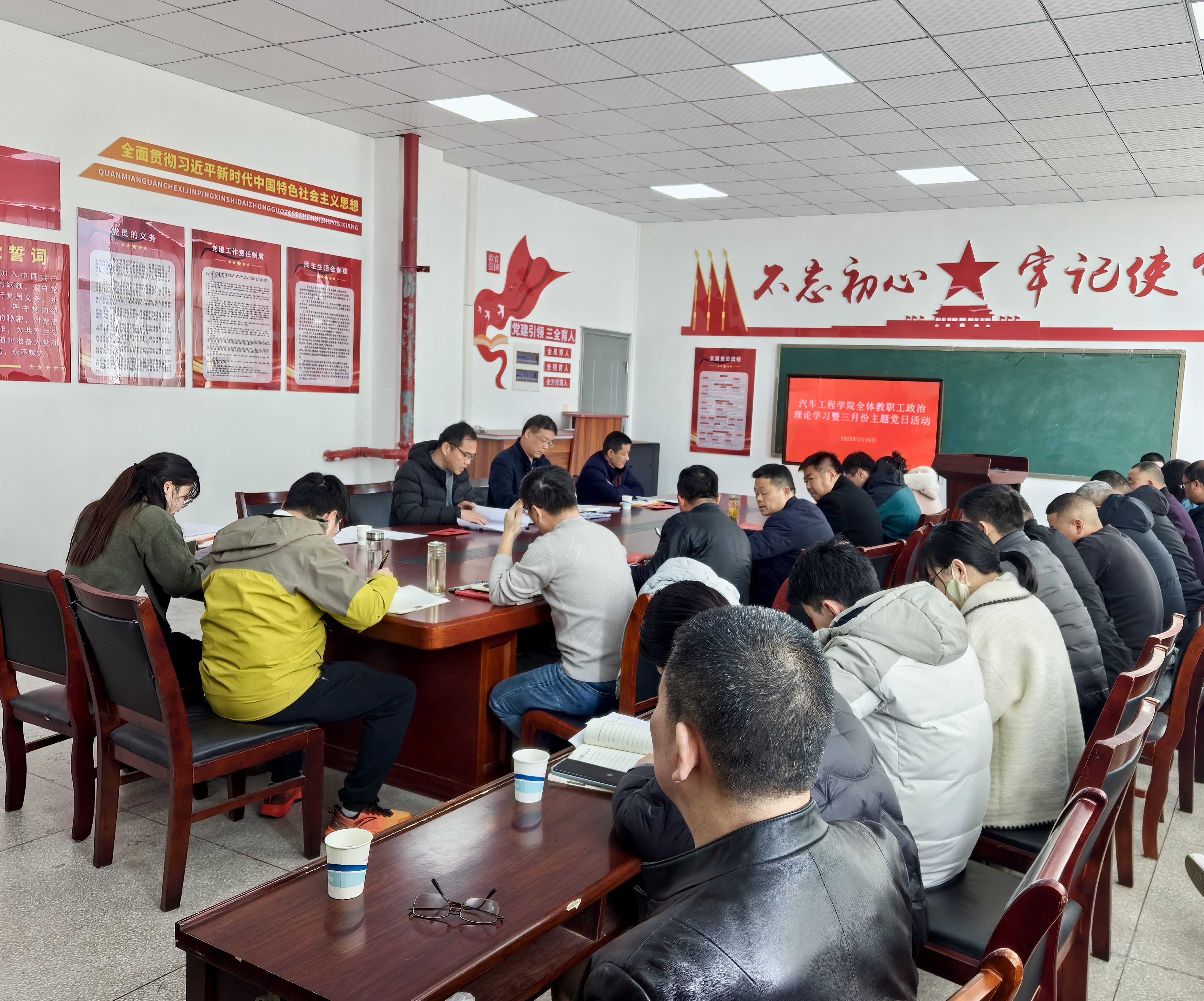 3月19日下午,汽车工程学院在汽车楼405党员活动室开展全体教职工政治理论学习暨三月份主题党日活动,学院党政班子及全体教职工参加活动,活动由学院党总支副书记(负责工作)刘靖主持。