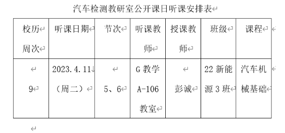 本次公开课教学观摩活动,在教师相互学习、借鉴教学经验的基础上,有效推动了教学理论与教学实践的融合,以研促教,对转变教学思想、更新教学观念、提高教学水平、提升教学质量有重要作用。一直以来,汽车检测教研室坚持开展公开课教研活动,实现集体备课、听课和评课的规范化、制度化和常态化,进一步推动教学改革创新。今后,汽车检测教研室将继续加强教师教学经验交流,进一步提升教师教学水平和课堂教学实效。