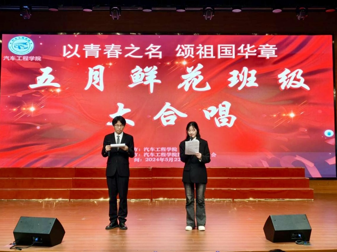 为营造健康、向上的校园文化氛围,丰富文化育人载体,引领学生立志做新时代好青年,汽车工程学院于5月22日下午在鼓山校区大学生活动中心二楼礼堂举办“五月的鲜花”大合唱比赛。该院党总支书记刘靖、院长许鹏、副院长伍东升、学管办主任张升元、团总支书记毛炜、全体专职辅导员及2023级全体学生观看比赛。