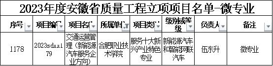 近日,安徽省教育厅公布了2023年度质量工程项目首批微专业试点建设名单,BB贝博艾弗森官方网站交通运营管理(新能源汽车服务企业方向)项目获批立项建设。