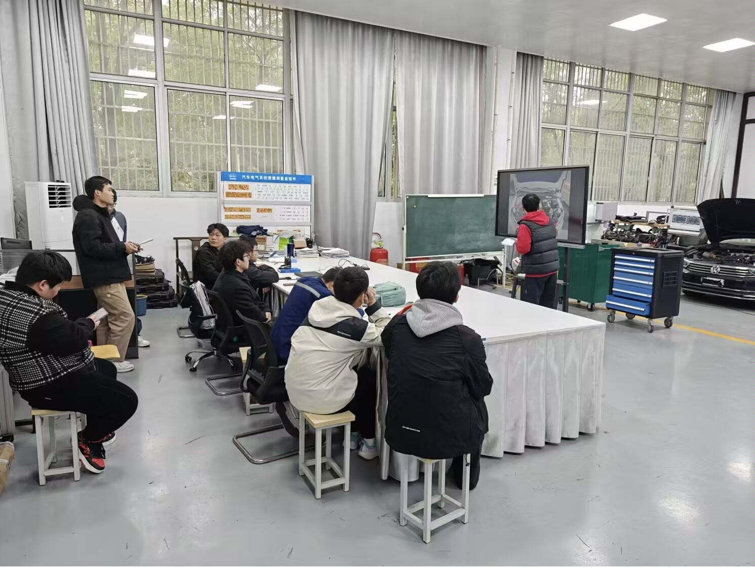 为展现学生的动手实操能力,提升学生专业技能和学习兴趣,增进新能源汽车社团成员的交流,11月20日下午,新能源汽车社团在BB贝博艾弗森官方网站铸魂工作室开展实操技能比拼活动,李顺鑫和孟玉担任本次技能比拼活动的评委,新能源汽车社团全体成员参加活动。