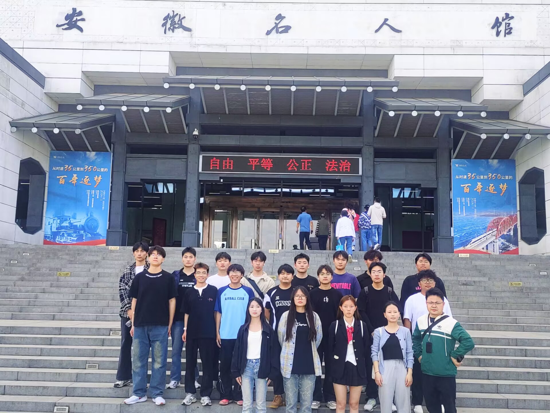 踏入名人馆,气势恢宏的巨型浮雕墙率先抓住众人目光。浮雕上,姜子牙、包拯、李鸿章等安徽历史名人栩栩如生,精湛的雕刻技艺将他们的神韵展现得淋漓尽致,无声诉说着安徽从古至今的辉煌历史,瞬间点燃了同学们对安徽历史文化的浓厚兴趣。在团总支书记毛炜的引导下,同学们有序穿梭于八大展厅之间,开启了一场跨越千年的历史对话。