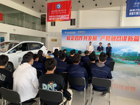 4月7日下午,安徽合廉创汽车销售有限公司郑盼港经理一行应邀来到BB贝博艾弗森官方网站22汽营转段班进行课堂实践教学活动。BB贝博艾弗森官网院长解云、党总支副书记刘靖、副院长伍东升来到课堂现场进行旁听。