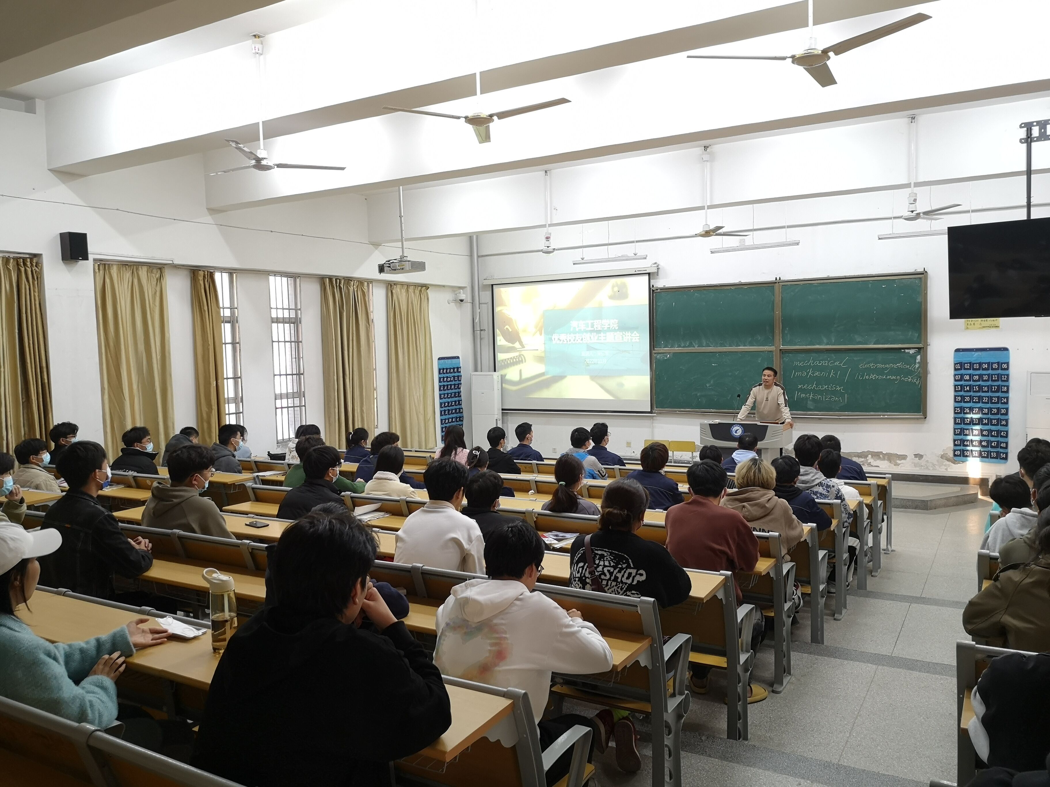 为深入贯彻党中央、国务院和省委、省政府“稳就业”、“保就业”决策部署,全面落实习近平总书记关于“创新创业创造”的重要论述,积极引领大学生培育创业意识、增强创业能力,营造良好的创业氛围,2022年11月24日下午,BB贝博艾弗森官方网站在鼓山校区教学A楼一楼阶梯教室举行优秀校友创业主题宣讲会。BB贝博艾弗森官网2011届优秀毕业生、合肥市优源汽车有限公司总经理宋仁军应邀给BB贝博艾弗森官网2021级各班级学生代表进行大学生创业主题宣讲。
