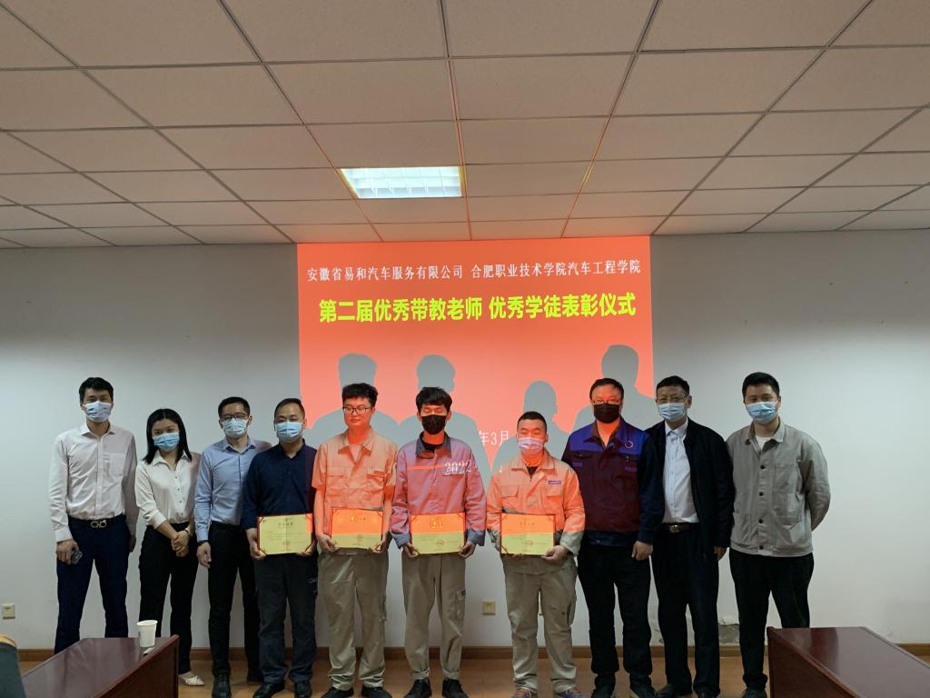 3月14日上午,我校BB贝博艾弗森官方网站在安徽省易和汽车服务有限公司与该企业联合举行“三全育人”之“工匠精神”培育第二届优秀带教老师、优秀学徒表彰大会。安徽易和行政人事部经理罗曼、我校BB贝博艾弗森官方网站党总支书记高恒平、学校与公司部分职工代表、受表彰的优秀带教老师、优秀学徒,以及我校部分实习生和见习生代表参加表彰大会。