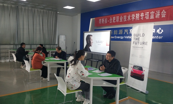 会后,在参观完学院实验实训场地后,特斯拉中国一行在BB贝博艾弗森官方网站新能源汽车实训中心进行了现场宣讲,对特斯拉的发展历程、管理理念以及薪酬待遇进行了详细介绍,对现场41名即将毕业的2018级新能源汽车技术专业学生进行了一对一的现场招聘,招聘会结束后特斯拉中国一行对BB贝博艾弗森官网培养的学生专业技术水平和职业素养给予了高度评价和认可。