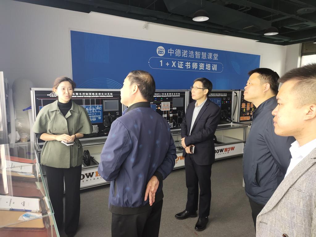 在工作人员的陪同下,一行人参观了中德诺浩公司总部优美的办公环境,了解到公司近20年服务教育的发展历程,认真听取了执行总裁楚萌关于中德诺浩“1+X”证书及汽车智能技术专业人才培养、课程建设方面所做的相关工作。在随后的座谈会上,双方就智能网联汽车检测与运维“1+X”证书省级牵头校的近期工作、汽车智能技术专业建设、课程资源共享、师资共建、书证融通、学生考培等相关事宜进行深入交流与讨论,最终达成了初步合作意向,楚总特邀我校参加“2020第五届中国新能源及智能网联汽车职业教育产教融合校长/书记论坛”,围绕如何推进“双高”建设、提质培优、“1+X”证书实施等一系列热门话题进行更充分的探讨。