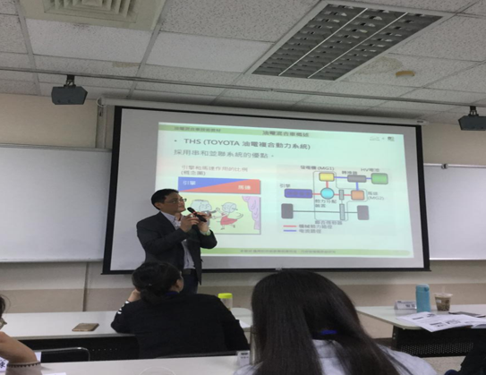 台师大专门邀请洪翊轩主任、吕有丰教授、张俊与老师、吴建动教授就台湾车辆与能源产业方面及汽车工程专业情况做了专题讲座,并讨论分析了大陆与台湾院校在汽车专业授课,实训等方面的不同特点和差距。
