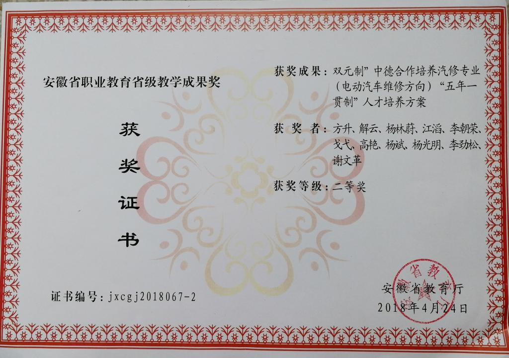 安徽省职业教育省级教学成果二等奖(2)