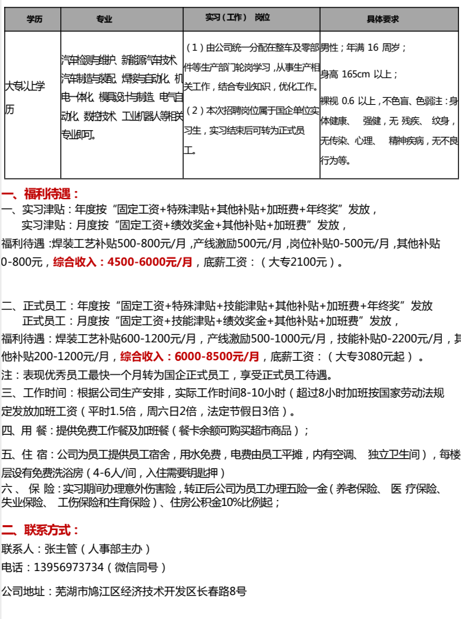 奇瑞公司招聘简章