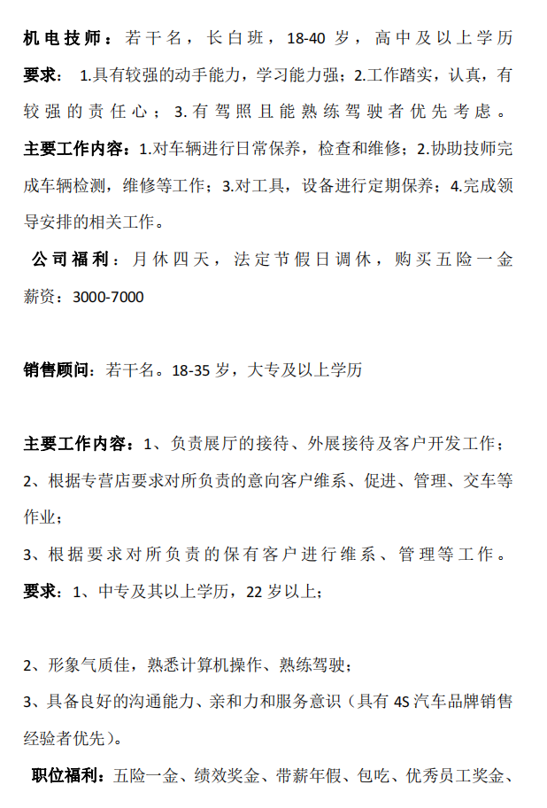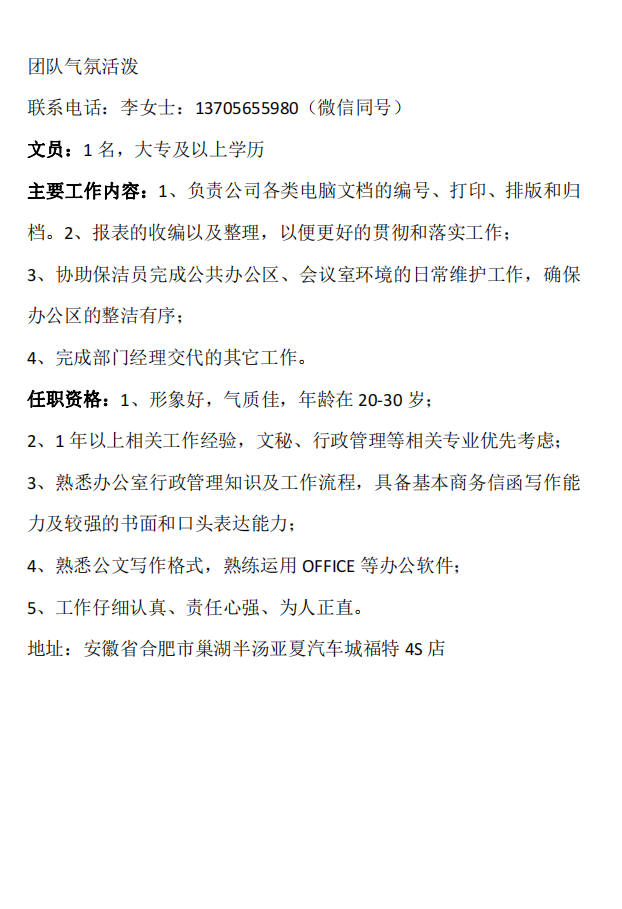 安徽万友汽车销售服务有限公司巢湖分公司招聘简章