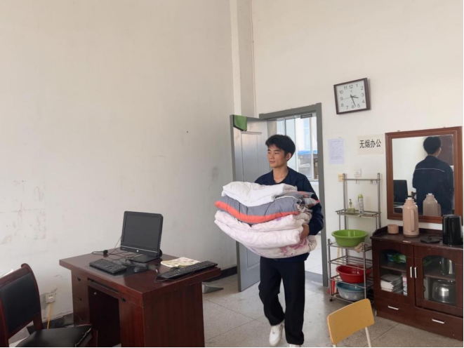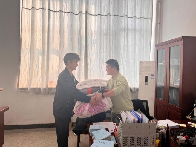 10月14号下午,一名学生捧着三床被子来到BB贝博艾弗森官方网站学管办办公室,他轻声地问道:请问这是钱长斌老师的办公室吗,我要把这些被子还给他。