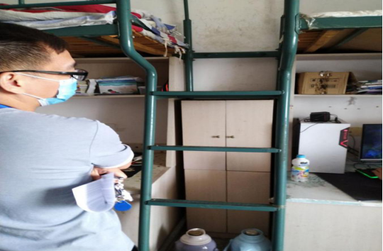 5月19日中午在党总支书记高恒平书记的指导下,伍东升副书记带领班主任全体成员排查七号楼公寓,金楚婷老师对女生一号楼进行安全隐患排查。告知同学们宿舍卫生通风空调合理利用,防止感冒发热,在高书记的指导下,全体班主任把疫情防控作为第一要务。