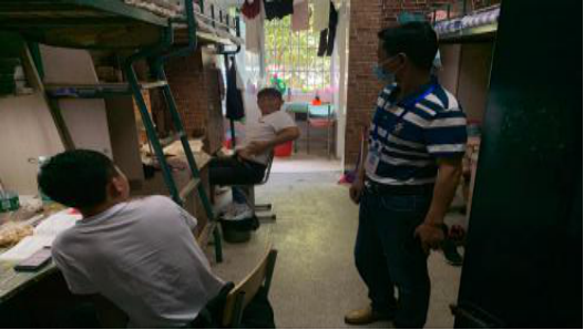 检查期间,张升元老师亲力亲为。学管办各班主任深入宿舍亲自督导同学们如何运用消毒液和酒精使用,包括空调电扇损坏水管情况统计。每间宿舍进行仔细排查,且对同学们做了防控疫情相关要求 。